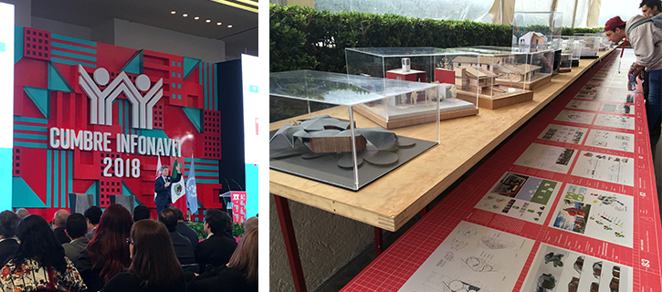 Los días 2 y 3 de abril, durante la Cumbre INFONAVIT 2018, estará montada la exposición "Del territorio al habitante" que curaron, diseñaron y montaron De Villar - Chacón arquitectos y Lucía Martín López para el INFONAVIT, con 84 propuestas de vivienda de autoproducción asistida que enfatizan la diversidad de las costumbres y los modos de construir de México.